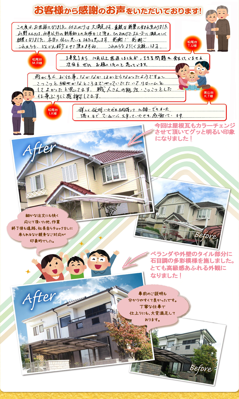 【大手住宅メーカーを経験した実績のある職人ばかり!!一級塗装技能士含】自社施工技術者のみの施工です。施工前の隣接へご挨拶に始まり、工事が終わってからも、長いお付き合いをお願いします。洗浄・下地処理から丁寧に行いますので、施工後の「仕上がり」・「塗装の持ち」に差が出ます。